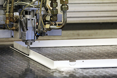Das maschinelle Dichtschäumen von Türelementen, Verkleidung oder Gehäusen mit unserer CNC-gesteuerter Polyurethanschäumanlage senken den logistischen Aufwand und somit Ihre Fertigungskosten.
